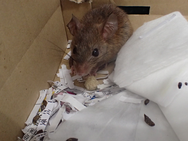 特にクマネズミは警戒心が強く、置いたばかりの殺鼠剤をなかなか食べません。そこでネズミを「殺鼠剤以外に食べるものが無い状況」に追い込む工夫をします。具体的には床の上の生ゴミを徹底的に清掃して片付ける、現場の従業員さんに生ゴミは蓋ができるゴミ箱で管理するようお願いする、戸棚や机の上に置いたままの食品を密閉容器に入れて保管していただくようお伝えするなどです。